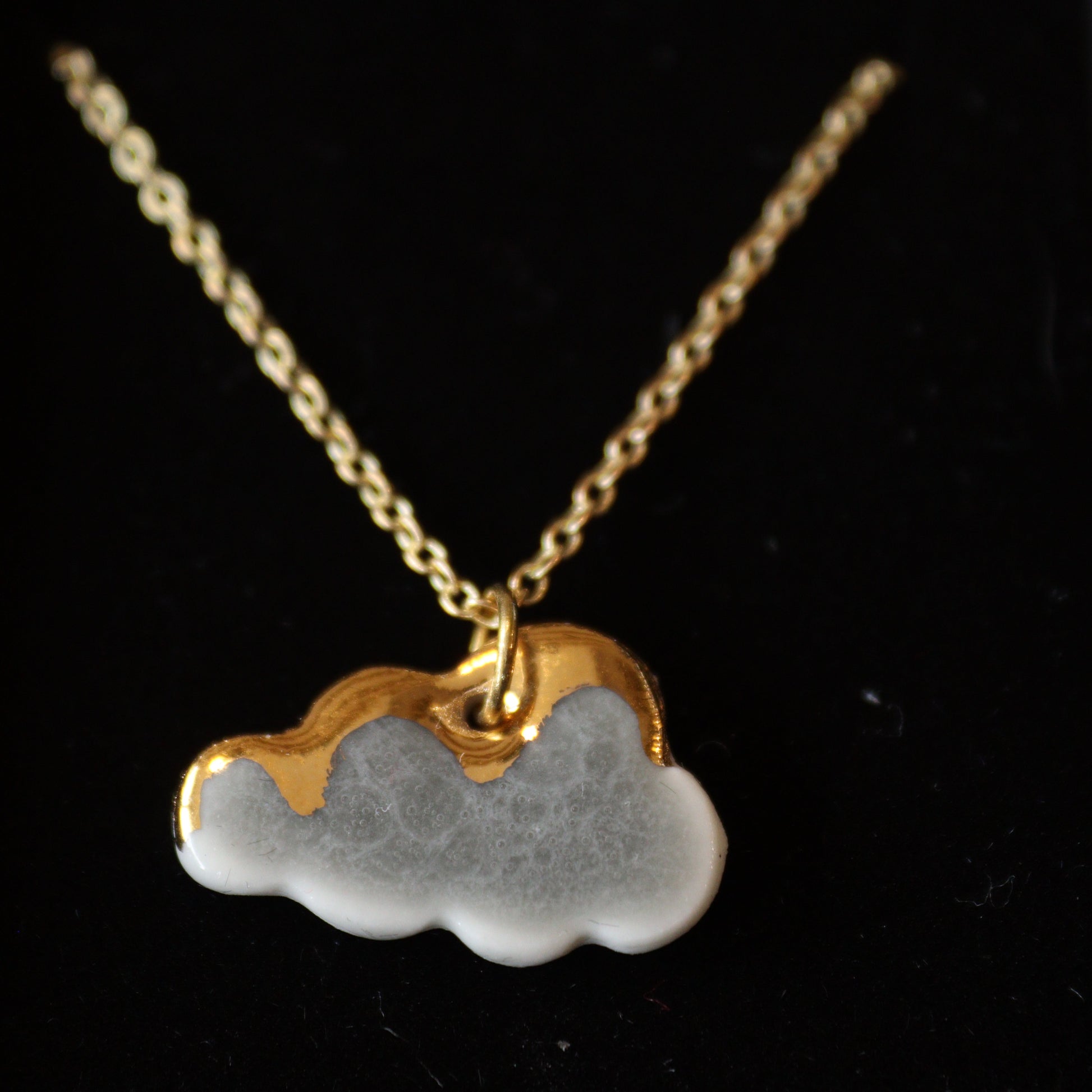 These cute pieces are handmade from porcelain, glazed, and adorned with genuine 22k gold lustre accents. The cloud is 2.5cm (1 inch) wide.