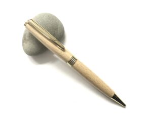 The pens are individually turned and polished and then carefully examined to ensure a high quality. The pens are created in many types of wood including Bog Oak, Yew, Ash, Elm, Olive, Beech, Cherry, Laburnum, Purple Heart, Oak, Maple, Pear, Walnut & Spalted Beech.